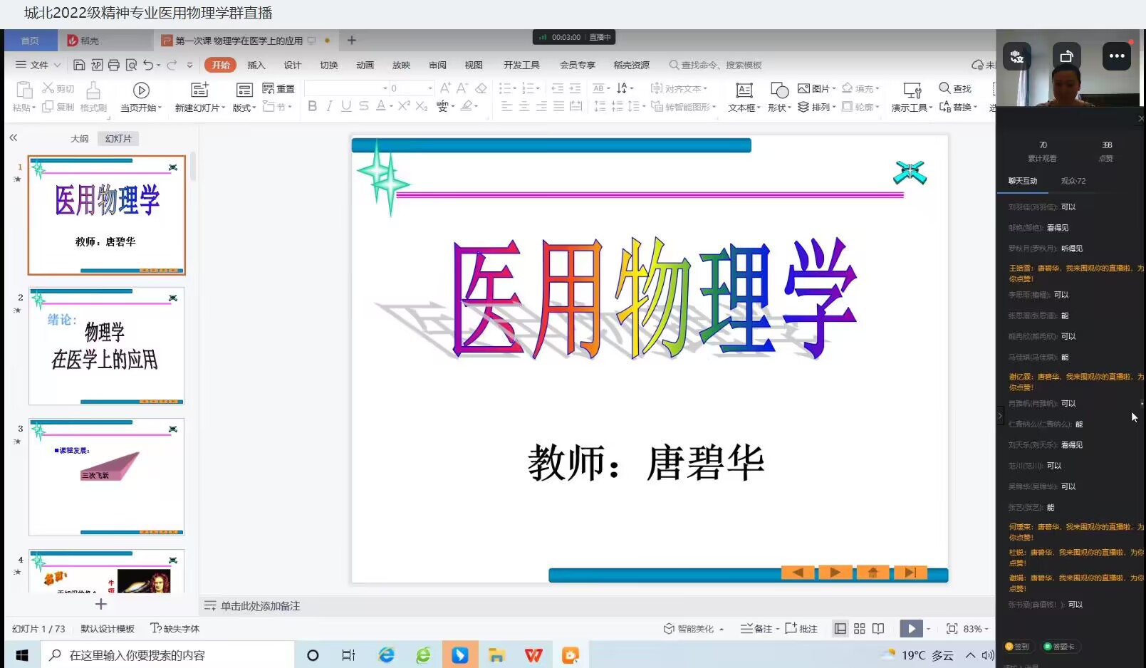 新生线上教学第一天,全体任课教师严格落实《关于进一步规范教师线上教学行为的通知》要求,提前15分钟进入课堂,提前完成学生签到,各项工作准备完善。教师在课堂上有序组织教学,积极引导学生参与连麦、回答问题等,有效提高新生的学习参与度,激发了新生的学习兴趣,课堂氛围活泼生动。新生准时到课、认真听讲、做好笔记、积极思考与互动,展现出良好的精神风貌与崭新气象。
