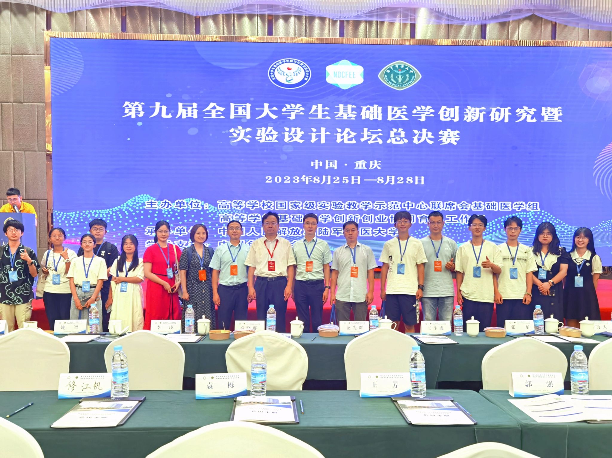 本次大赛由高等学校国家级实验教学示范中心联席会基础医学组、高等学校基础医学创新创业协同育人工作组主办,中国人民解放军陆军军医大学承办。由基础医学院教师曾凡才、李翔指导的黄官瑞团队获得创新研究类金奖;临床医学院教师江涌和彭建华指导的关馨团队、口腔医学院教师郭玲和张博指导的张昊团队、药学院教师周美玲和刘明华指导的邓琴敏团队分别获实验设计类银奖;基础医学院教师谭晓秋和心血管研究所教师陈唐葶指导的林子皓团队获实验设计类铜奖。