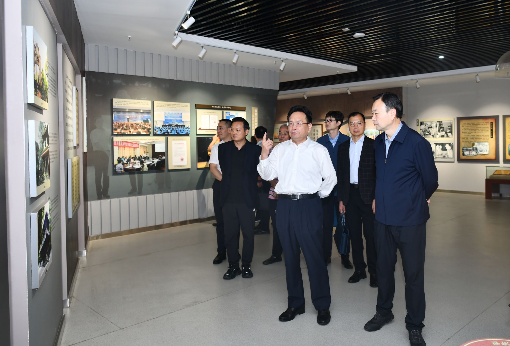 25日下午3点,任文杰一行参观了学校校史馆,了解beat365官网历史发展进程、办学成果、社会服务贡献、学科建设工作等。结束校史馆参观后,任文杰一行又前往学校科技大楼调研beat365官网科研平台建设情况。学校党委副书记、校长张春祥,发展规划处处长赵领,研究生院院长范贤明全程陪同参观。