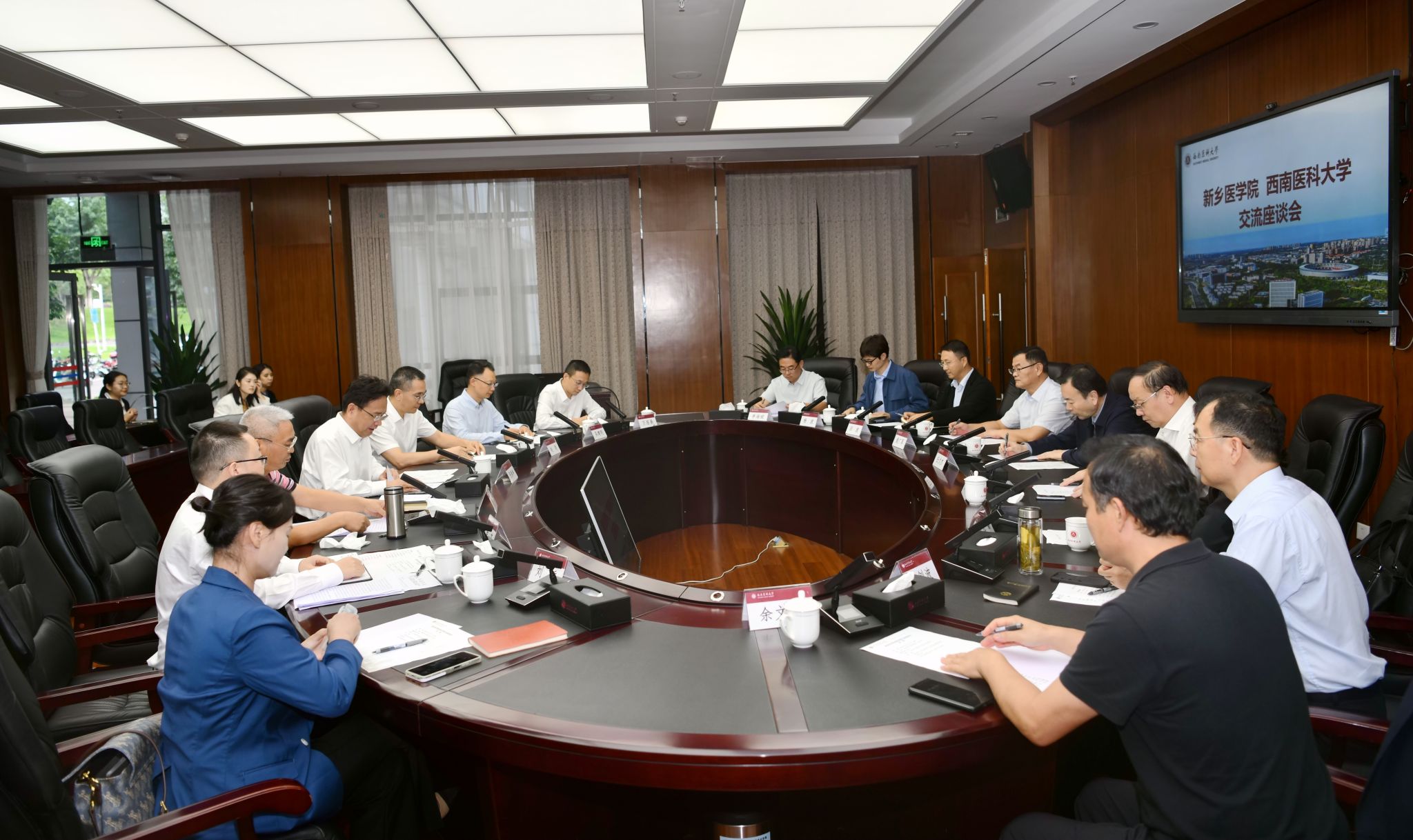9月25日,新乡医学院党委书记、校长任文杰,副校长王辉,研究生学院、基础医学院、医学技术学院、新乡医学院第一附属医院等负责人一行9人到beat365官网考察交流。