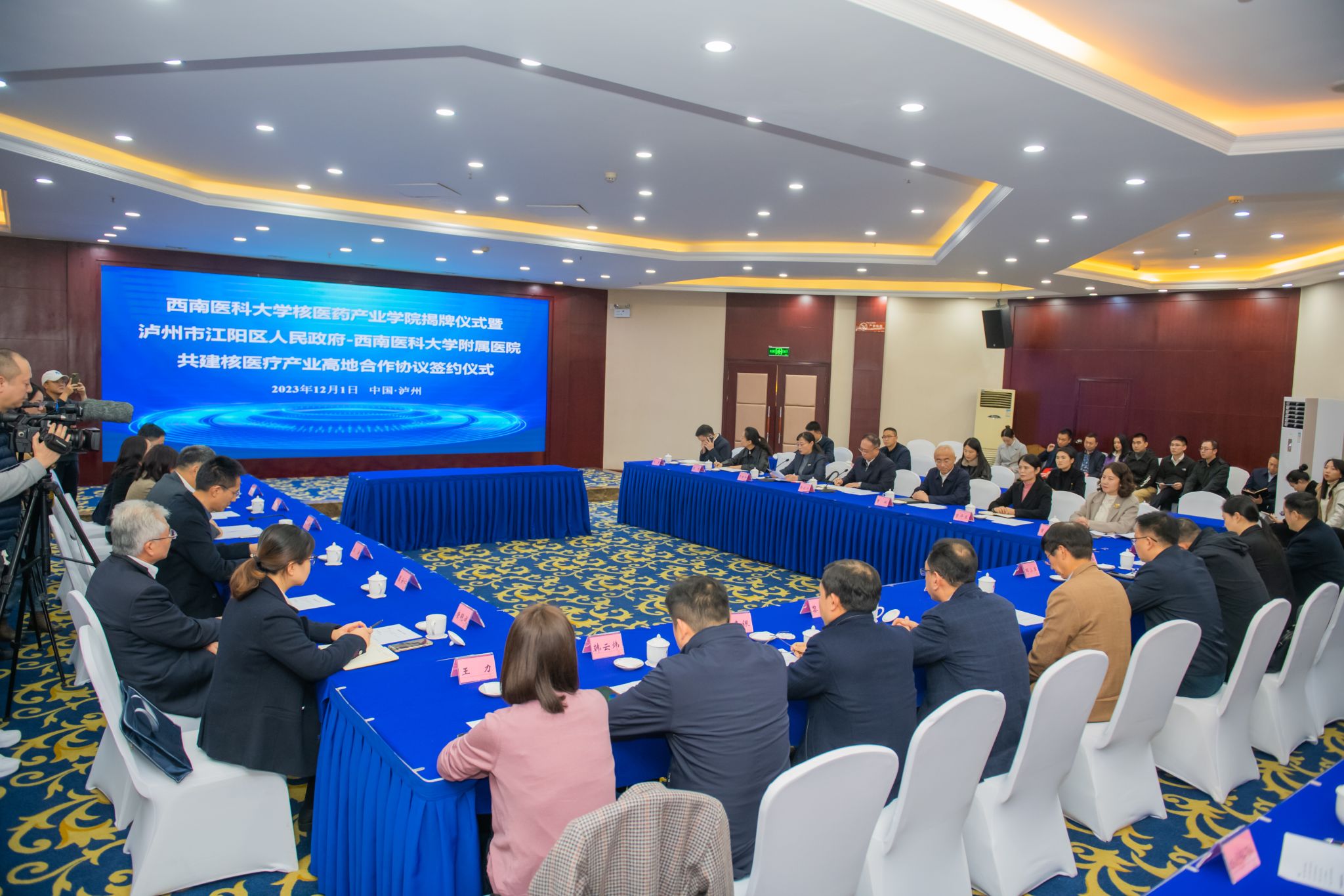 12月1日,beat365官方网站核医药产业学院揭牌仪式暨泸州市江阳区人民政府与beat365官方网站附属医院共建核医疗产业高地合作协议签约仪式举行。beat365官方网站党委书记廖斌,泸州市委常委、江阳区委书记郭宏川分别致辞。