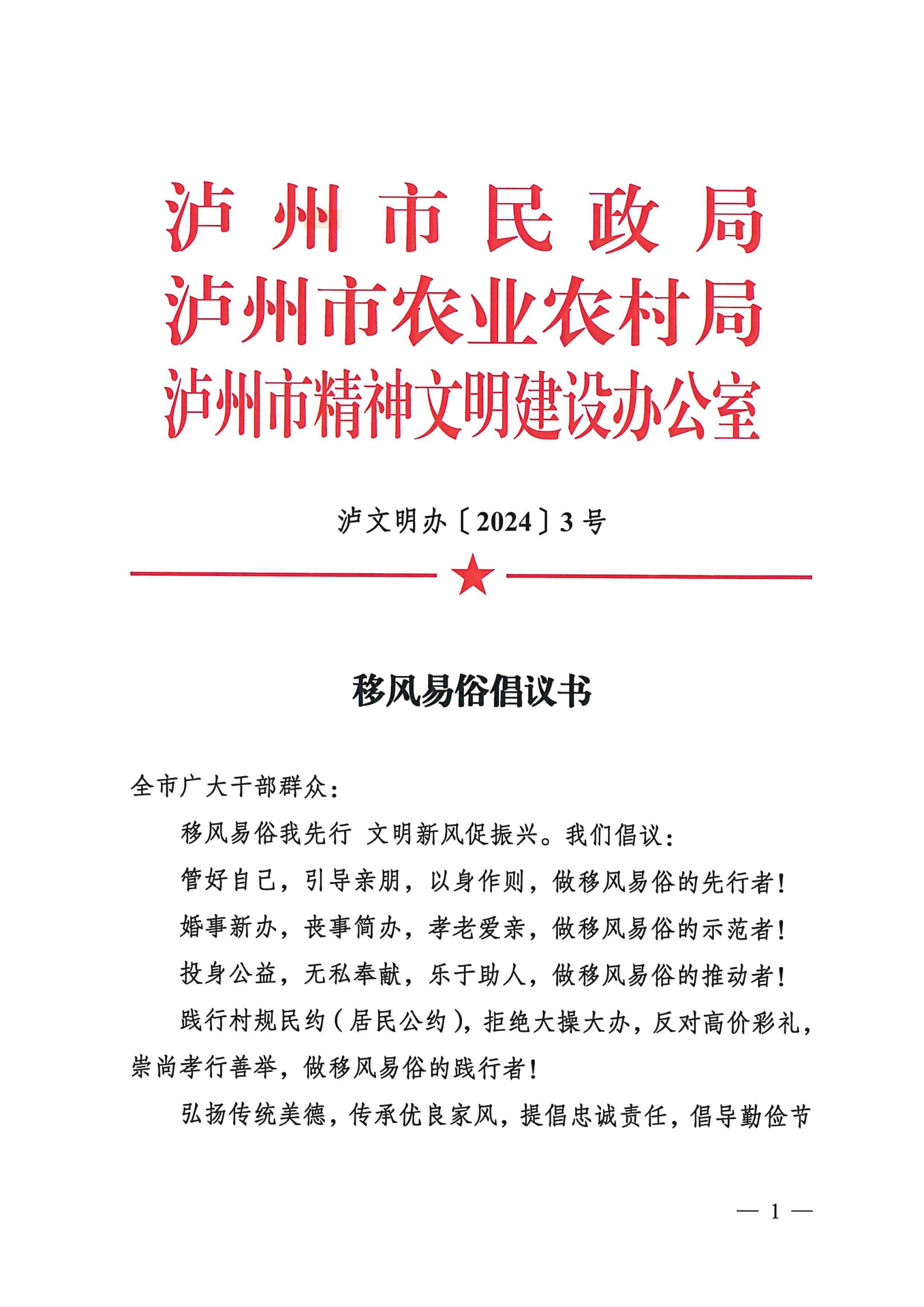 移风易俗倡议书
