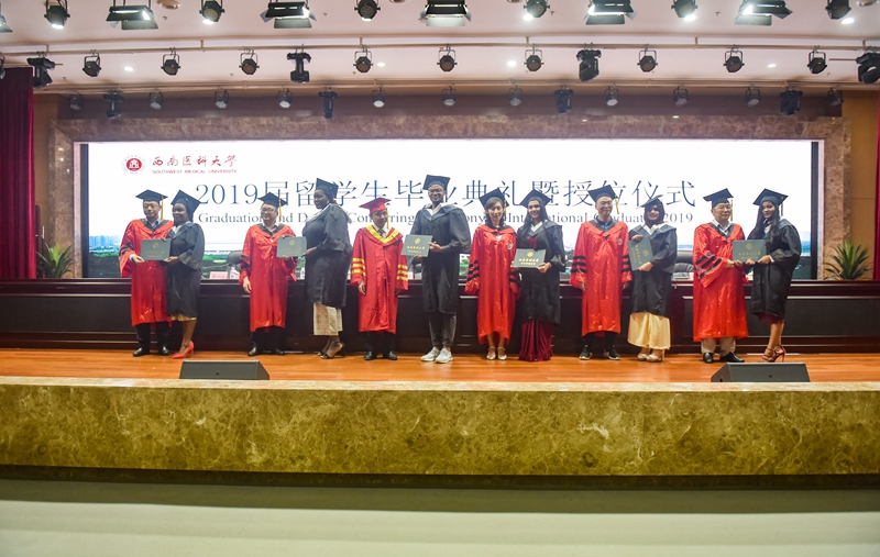 日前,2019届留学生毕业典礼暨学位授予仪式在城北校区第二学术报告厅举行。副校长刘广益教授、教务处处长尹思源教授、研究生院院长范贤明教授、临床医学院•附属医院院长杜一华教授、国际教育学院院长田耘教授等出席毕业典礼并为毕业学生授位。典礼由副校长何涛主持。