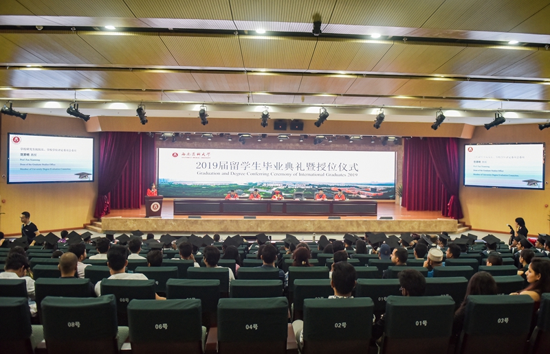国际教育学院领导、教师,国际合作交流处外事科科长杨珍,萨蒂欧莱中国公司高级经理Priya女士,全体2019届留学生毕业生及部分毕业生亲友代表参加了毕业典礼。