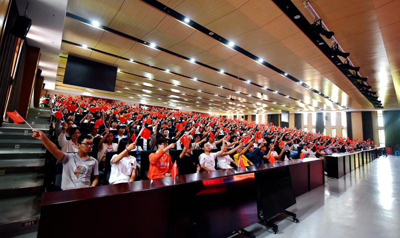 上午9:00,学校在城北校区第一学术报告厅组织集中观看庆祝新中国成立70周年大会直播。党委副书记刘毅、学生工作部、校团委全体人员以及各院系分管学生工作领导和学生辅导员、学生代表800余人共同观看。阅兵队伍整齐的阵容、豪迈的气势、先进的武器装备让大家热血沸腾、赞叹不已,整个直播过程师生频频鼓掌、不断喝彩,由衷为祖国的强盛深感自豪与骄傲。