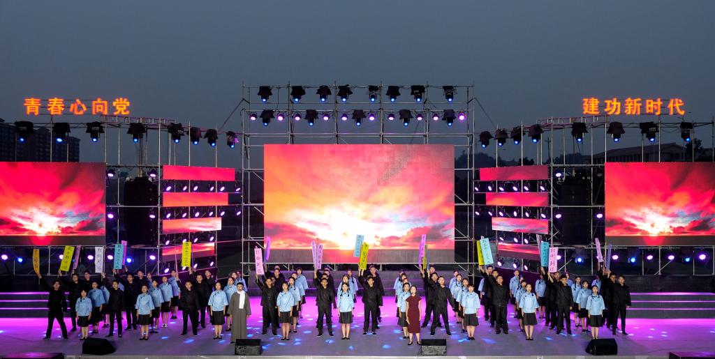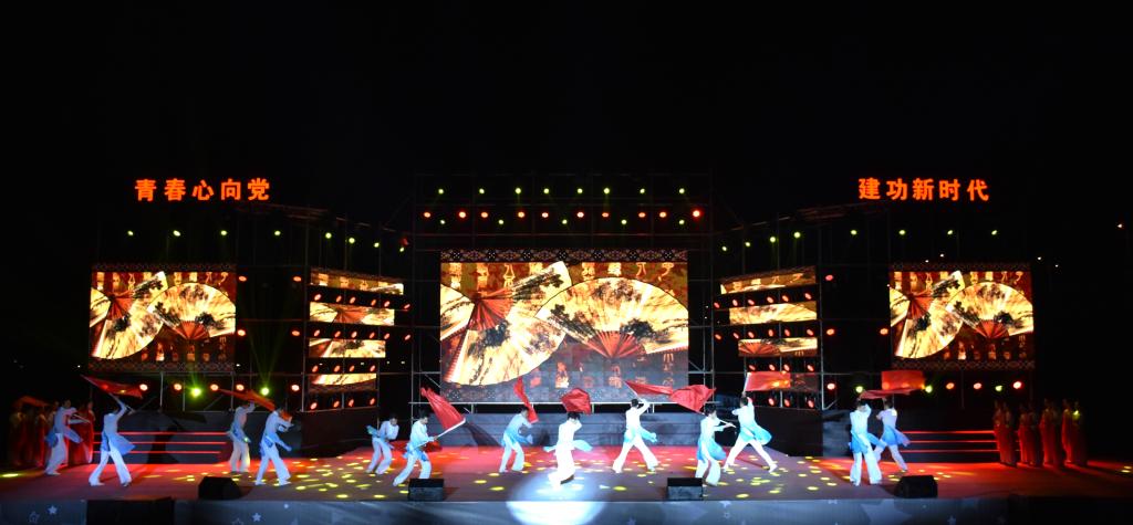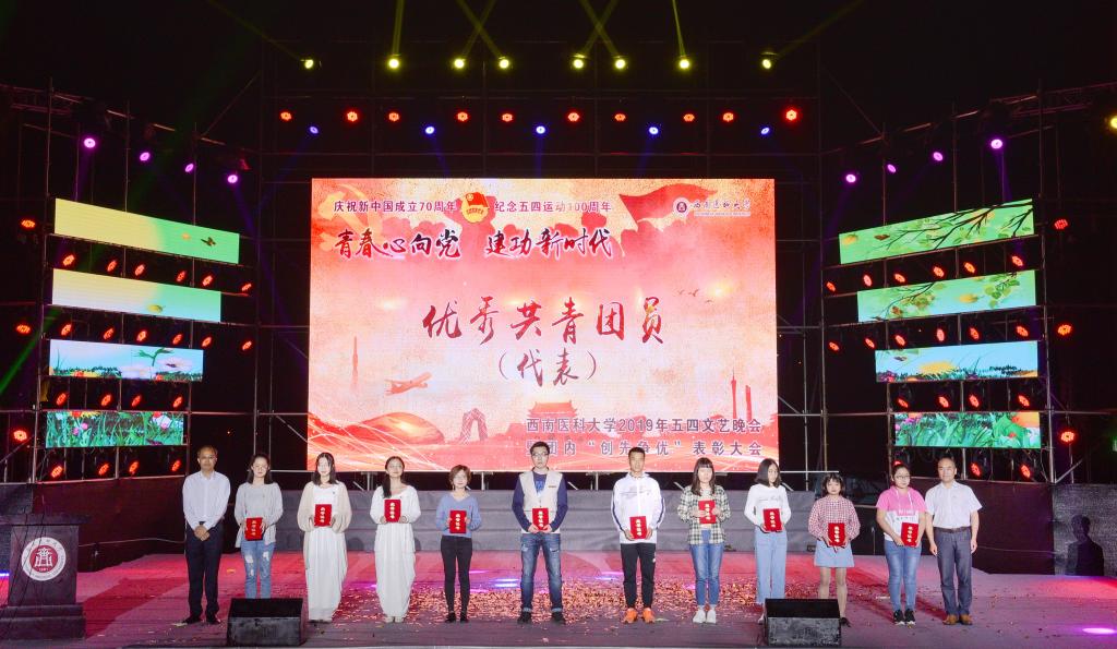 5月4日晚,beat365官网庆祝新中国成立70周年、纪念五四运动100周年五四文艺晚会暨团内“创先争优”表彰大会在城北校区青年体育中心足球场举行。