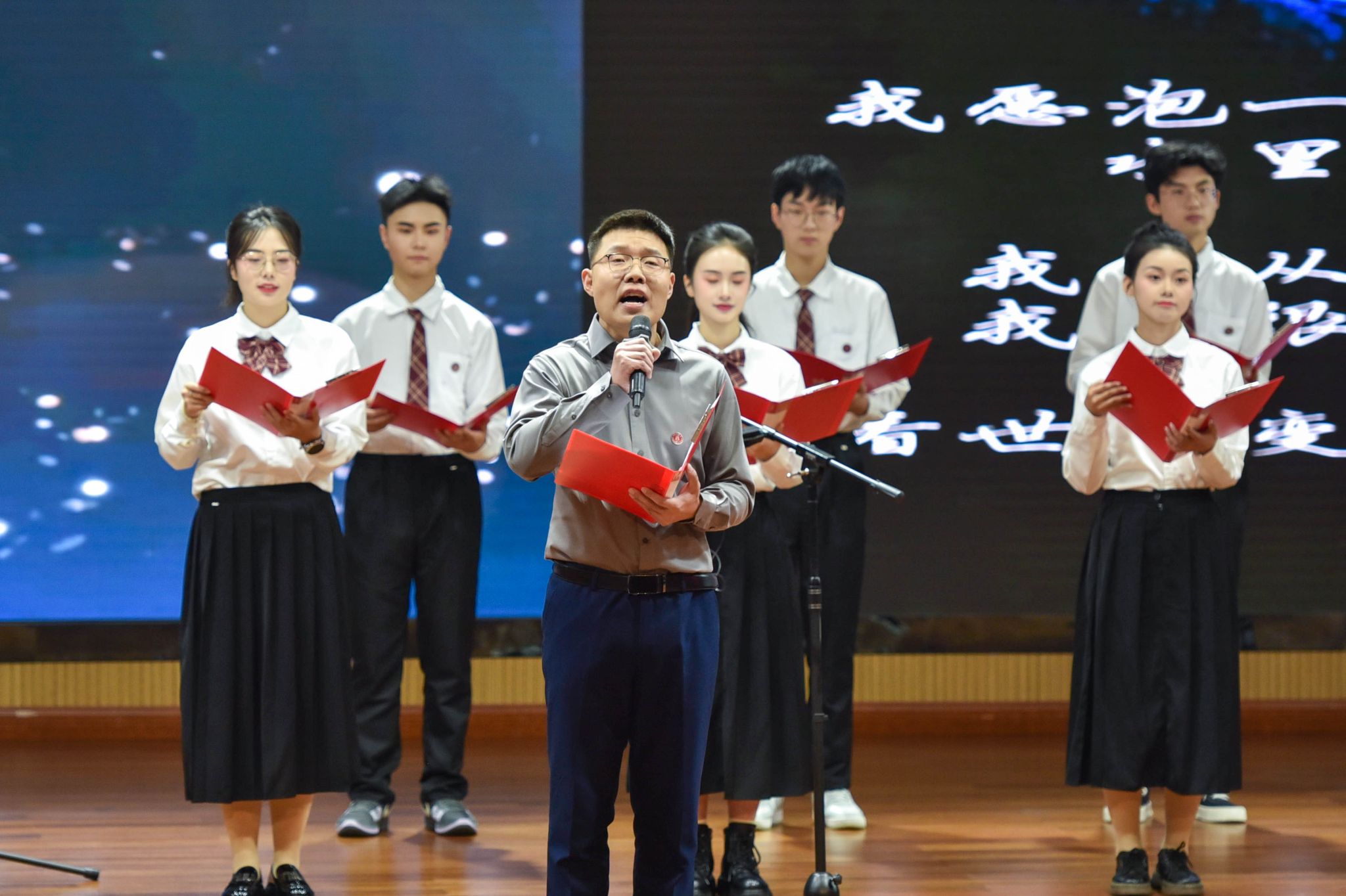 活动以基础医学院师生诗朗诵节目《沙与芽》拉开序幕。