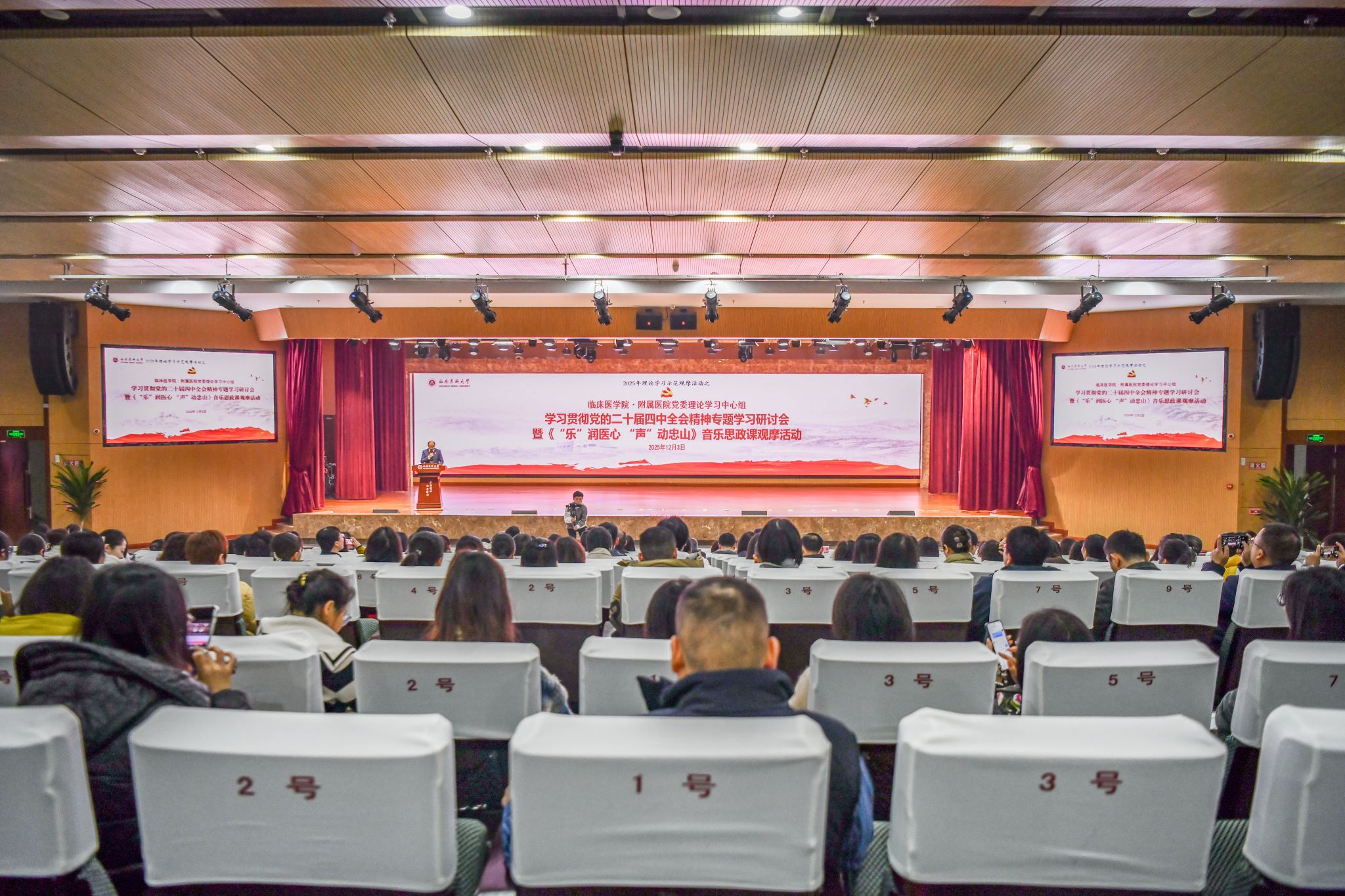 为深入学习贯彻党的二十届四中全会精神,123日,beat365官方网站2025年理论学习示范观摩活动之临床医学院·附属医院党委理论学习中心组学习贯彻党的二十届四中全会精神专题学习研讨会暨《“乐”润医心,“声”动忠山》音乐思政课观摩活动在城北校区第一学术报告厅举行。临床医学院·附属医院党委理论学习中心组作示范学习。学校党委书记张春祥,党委常委、副校长聂敏海,党委常委、副校长,临床医学院·附属医院党委副书记、院长江涌,党委常委、党委组织部部长柏珂,各二级党组织书记、党支部书记代表及学生代表到场观摩。会议由临床医学院·附属医院党委书记徐勇主持。