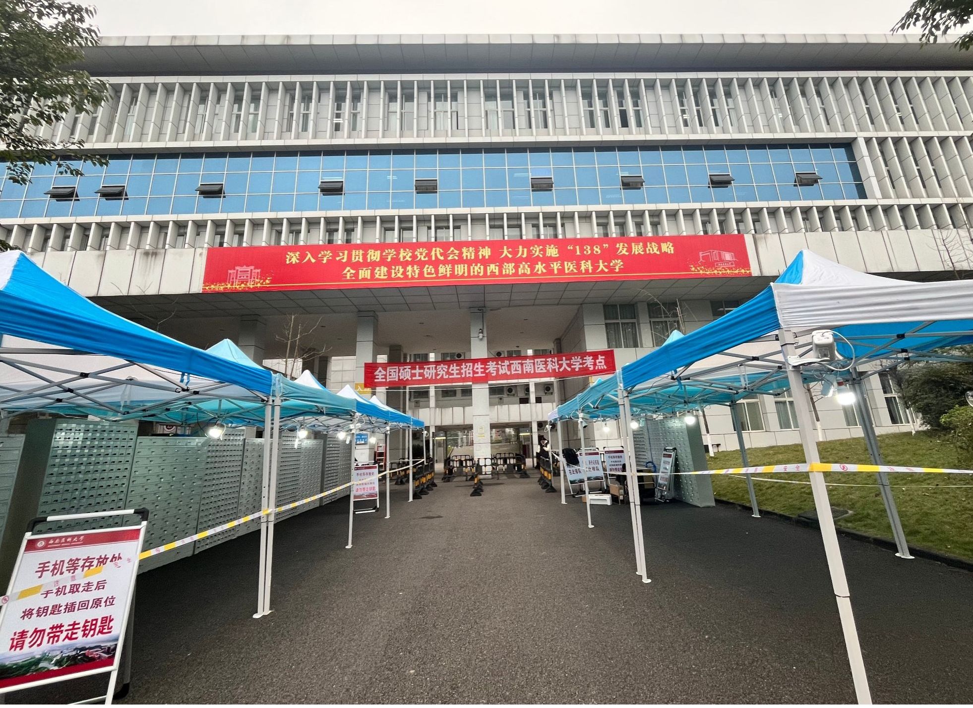 考点在考场外专门设置手机存放柜和物品临时寄存点,组织50余名工作人员提供寄存服务,并贴心提示考生填写信息、考后领取等注意事项,以真诚祝愿助力考生从容应考。