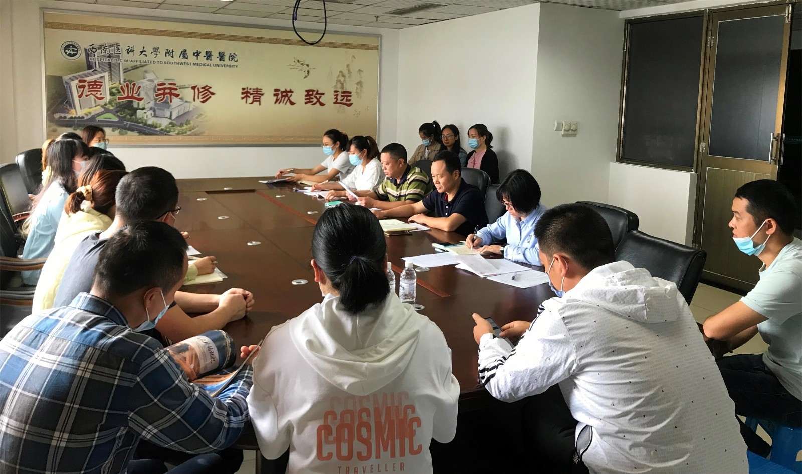 9月18日,beat365官方网站附属中医医院药剂第二党支部召开了第三季度党员大会暨习近平总书记关于疫情防控系列讲话专题学习会。附属中医医院党委副书记赵国强及药剂第二党支部全体党员、预备党员参加了此次会议。会议由该支部书记赵剑主持。