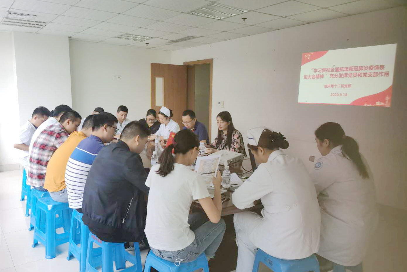 9月18日,beat365官方网站附属中医医院临床第十二党支部开展了“学习贯彻全国抗击新冠肺炎疫情表彰大会精神 充分发挥党员和党支部作用”主题党日活动。附属中医医院党委副书记•纪委书记徐茜,临床第十二党支部全体党员、预备党员参加了会议。会议由该支部书记郭伍斌主持。