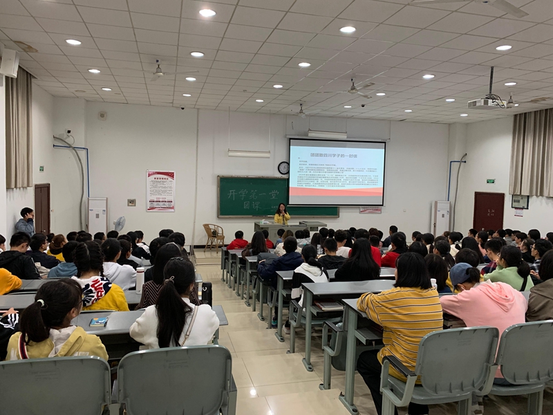 活动以全体人员起立同唱共青团团歌拉开序幕,让青年们在歌唱中定位自我;接下来由新生代表朗读了《团团致四川学子的一封信》,亲切的语言代团团传达了对新生的关怀与期待;阳永连带领同学们了解学校历史沿革,解读学校校徽及校歌的深刻含义;随后,全体新生观看《团团说‘一干多支’》了解川内各地的发展;活动的高光时刻是引领青年们坚定个人理想信念,在人民的立场上,建功新时代,与社会共命运;观看《团团说唱节约美德》视频,推崇节约风气,让同学们积极参与到全民光盘的活动中;活动的最后,阳永连做了简短而精炼的总结点评使活动圆满结束。