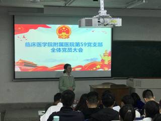 11月12日晚,临床医学院·附属医院第59党支部在忠山校区1阶召开了接收预备党员大会。会议由党支部书记刘立航主持,全体教师党员和学生党员参会。