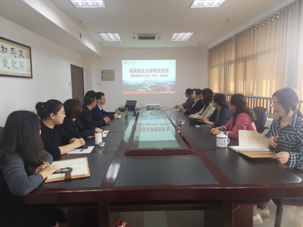 11月19日上午,马克思主义学院党总支在德诚楼1012会议室举行2020年第四季度中心组(扩大)学习会,会议由马克思主义学院党总支书记张圆主持。