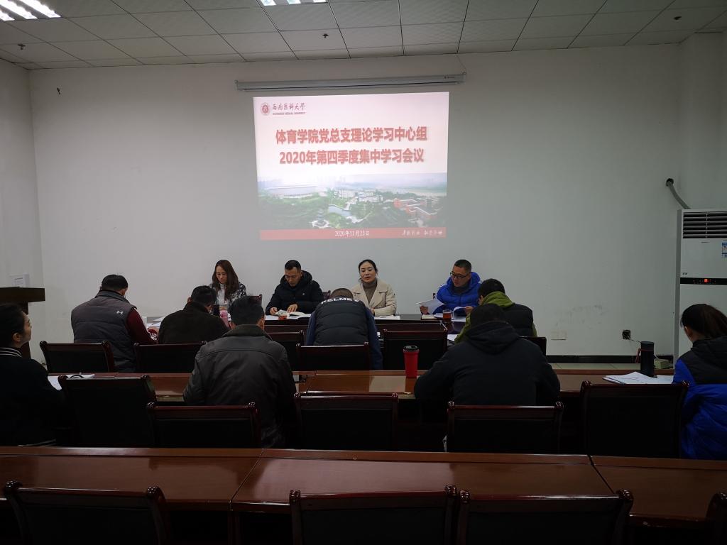 11月23日上午,体育学院党总支在学院会议室召开2020年第四季度中心组学习会,学院处科级干部、系部主任参加了学习,会议由学院党总支书记邹小萍主持。