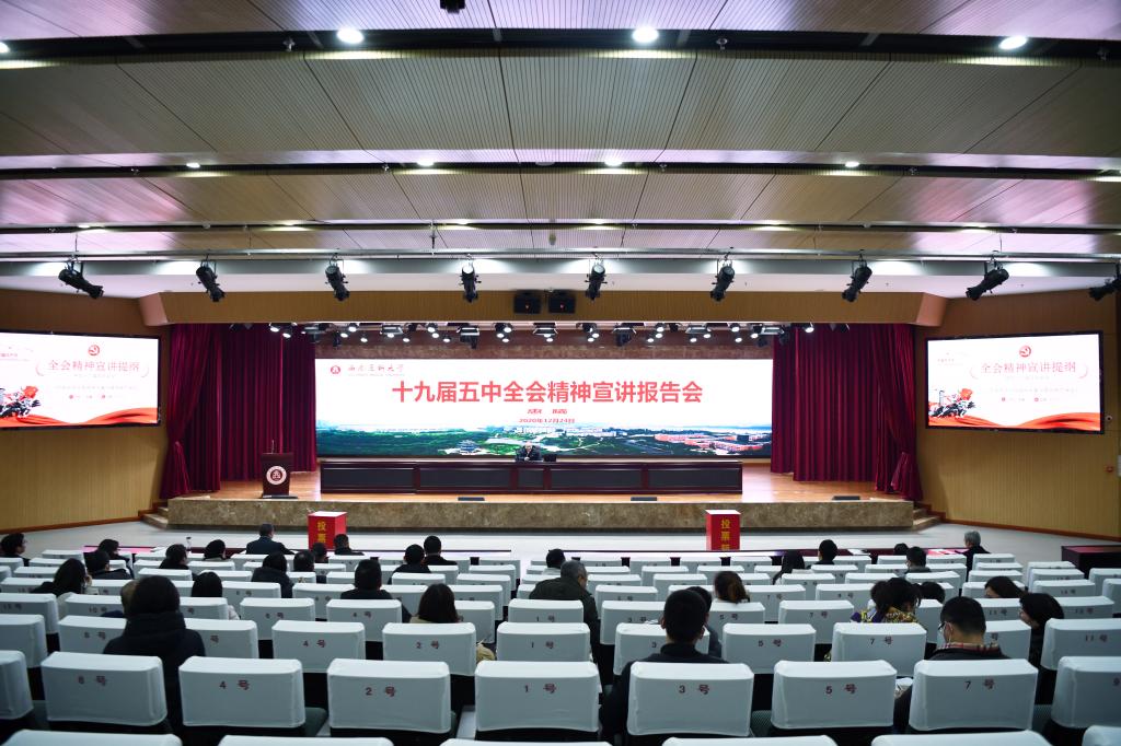 选举结束后,机关党委邀请学校讲师团成员惠曦教授为全体党员干部作学习贯彻党的十九届五中全会精神专题报告。惠曦从“十三五”重大成就到“十四五”经济社会发展的指导思想、基本原则、主要目标和重点任务,为大家深刻阐述了新发展阶段、新发展理念和新发展格局的科学内涵。