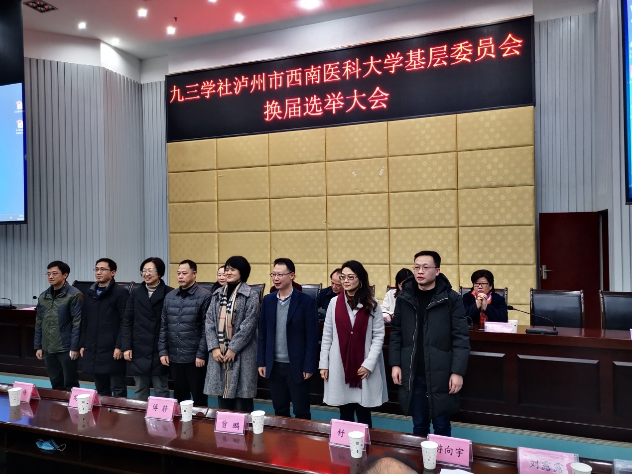 吴建明代表新一届班子作表态发言。他表示,在学校党委和九三学社泸州市委的领导下,将团结基层委广大社员,做好基层委组织建设、参政议政和社会服务等工作,为学校的发展和泸州市的地方经济建设做出新的贡献。
