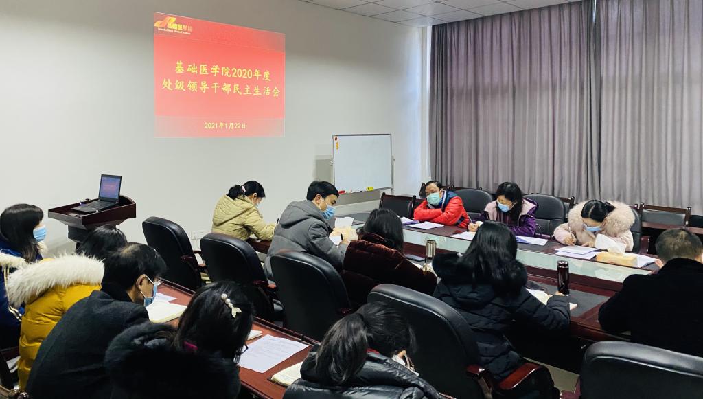 按照学校党委部署要求,1月22日下午,基础医学院召开了2020年度处级领导班子民主生活会。学校副校长何涛和纪委副书记、纪委办公室主任刘圣斌出席会议,学院党委委员、班子全体成员和科级干部参加了会议,会议由基础医学院党委书记阳静主持。