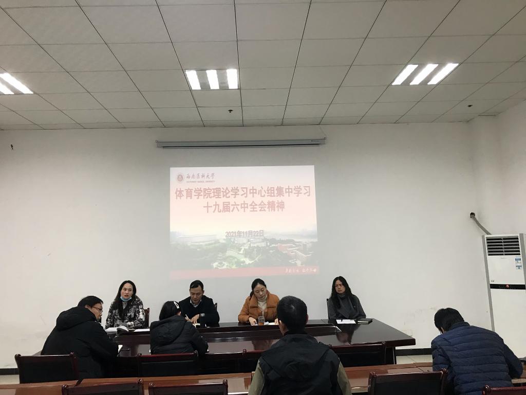 11月22日上午,体育学院党总支召开理论学习中心组第四季度集中学习(扩大)会议,专题学习党的十九届六中全会精神,学院理论学习中心组成员、党总支委员、各党支部书记参加了学习,会议由党总支书记邹小萍主持。