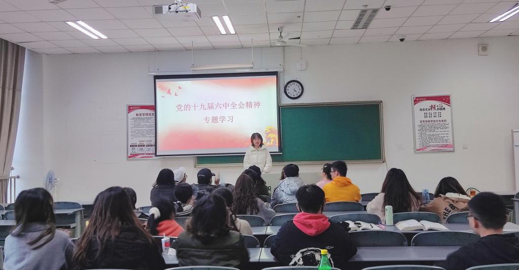通过此次精神专题学习,同学们学习了党的十九届六中全会公报内容,进一步明确了党的十九届六中全会精神,在接下来的学习生活中,我们青年大学生当以实际行动学习贯彻十九届六中全会精神,更加自觉践行坚定初心与使命,将个人理想与国家民族的事业紧密地连结起来,将所学所感内化于心,外化于行,以实际行动付吾辈之韶华,耀吾辈之中华。