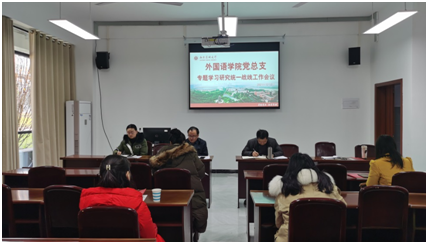 12月2日下午,外国语学院党总支在文渊楼一楼134会议室召开专题学习研究统一战线工作会议。会议由党总支书记周晓昀主持。学院党总支委员、各党支部书记及民主党派教师代表参加。