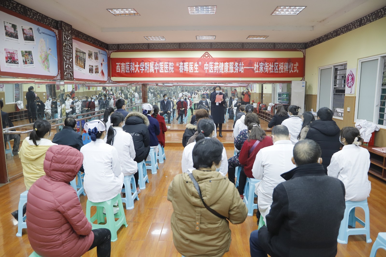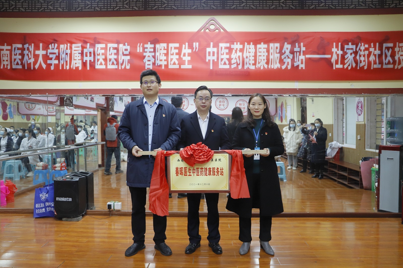 12月10日,beat365官方网站附属中医医院举行“春晖医生中医药健康服务站”授牌仪式,泸州市委宣传部机关党委第三支部相关人员,龙马潭区小市街道杜家街社区党委书记王冬梅,beat365官方网站附属中医医院党委副书记雷学举及骨伤科创伤组党支部等临床党支部医护人员参加了仪式。仪式由龙马潭区小市街道杜家街社区党委副书记朱言梅主持。