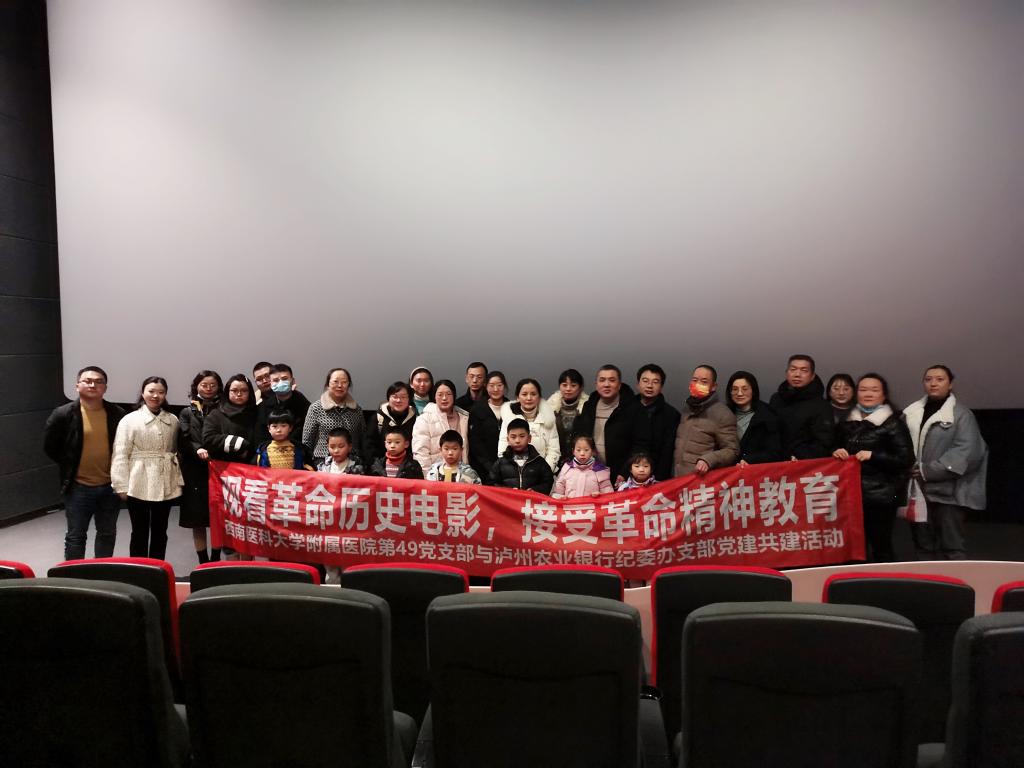 为进一步推进党史学习教育走深走实,激励广大党员、职工传承红色基因、牢记初心使命,加强与结对共建支部的交流联系,12月29日晚上,康复医学系党总支组织职工支部和泸州农业银行纪委办支部党员代表、发展对象、入党积极分子代表30余人观看了影片《跨过鸭绿江》。