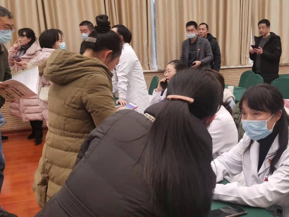 最后是整场活动的最高潮——beat365官方网站附属医院五个党支部党员代表面对江阳区财政局、江阳区审计局党员同志们的联合义诊活动。义诊现场井然有序,专家们面前有序排起了长队,大家你问我答,视触叩听,十八般“武艺”都用上了。