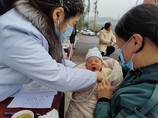 杨萍为宝宝检查后,安慰道:“不要着急,娃娃没啥大问题,就是感冒了,肺部和心脏都很正常。如果你们担心娃娃年龄太小,不想把他带进医院,我可以给你们开个处方,你们进卫生室拿点感冒药回去吃,条件允许还可以做雾化辅助治疗,效果会更好。”听到医生耐心解释后,宝宝父母心中的石头终于落了地,感慨道:“谢谢医生,我们今天遇到贵人了!要不是你们在这儿义诊,我们两口子还在纠结要不要带娃儿进医院……”