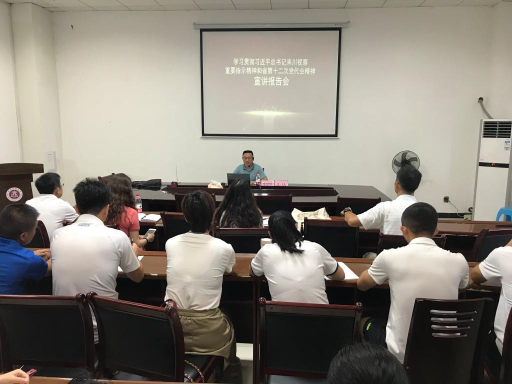 为进一步推动理论学习示范单位创建工作,做好习近平总书记来川视察重要指示精神和省第十二次党代会精神的学习宣传贯彻工作,7月6日上午,体育学院邀请泸州市理论宣讲团成员、学校马克思主义学院李世仿副教授来院作学习习近平总书记来川视察重要指示精神和省第十二次党代会精神宣讲报告。体育学院处科级干部、学院全体党员参加集中学习,讲座由体育学院党总支书记邹小萍主持。