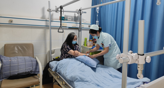 蓝田片区临时静态管理让郑惠琳内心无比煎熬:“呆在家里看着楼下辛苦的‘大白’们,我就想到还在医院里坚守一线的同事,他们都值了好几天班了。”身为李香柔的好闺蜜,听说好友接到了去蓝田各小区采核酸的任务,郑惠琳毅然向医院请战,“我和香柔是同一天入党的好朋友,大家又都是护士,没理由她在一线抗击疫情,我却呆在家里,所以,我也要申请到一线工作。”经过反复讨论,院领导同意了她复岗的请求。当郑惠琳第一时间回到熟悉的工作岗位,看到病房医疗有序,病人安全,同事们齐心协力、并肩战斗,连着几天的焦躁情绪终于平复下来:“心里突然就踏实了。虽然没有战斗在疫情一线,不过,守好医院,守护好病人,这也是支持抗疫。”