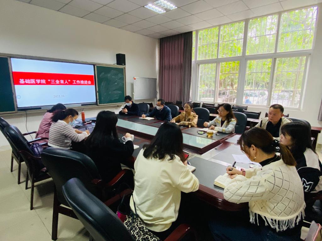 10月7日下午,基础医学院在鸿文楼一楼会议室召开省级“三全育人”综合改革试点院系项目建设工作推进会第三次会议。基础医学院党委书记阳静,党委副书记、纪委书记黄钰,副院长涂江义以及“三全育人”各项目组负责人参加了会议。会议由黄钰主持。