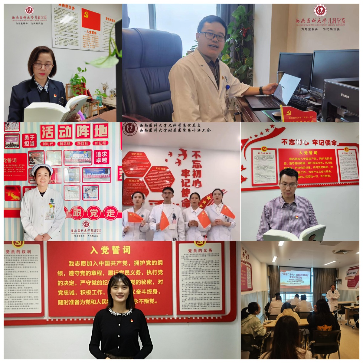 本次活动通过“线上”方式开展,内容围绕“弘扬传统文化•重温红色记忆”,突出“为党育人、为国育才”热情,共收到20余项作品,类型涵盖二十大寄语、唱红歌、红色经典朗诵、红色故事绘本等,作品从不同角度、以不同形式讴歌了中国共产党带领中华民族走上了一条繁荣、富强、复兴之路。儿科学系党总支辖各党支部积极参与,立足基层党组织特色,结合科室日常工作,充分展示了党员和教职工“祝福祖国繁荣昌盛,喜迎党的二十大胜利召开”的良好精神面貌。儿科学系党总支与附属医院第十分工会组织教师代表,对项目进行了评比,并奖励了优秀作品。