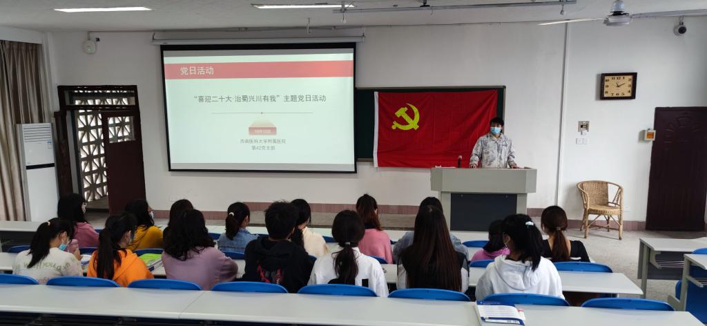 为深入学习贯彻习近平总书记来川视察重要指示精神,做深做实喜迎党的二十大党员教育活动,2022年10月12日,beat365官方网站附属医院第42党支部在忠山校区15阶组织开展了“喜迎二十大•治蜀兴川有我”主题党日活动,支部全体成员参加了活动。