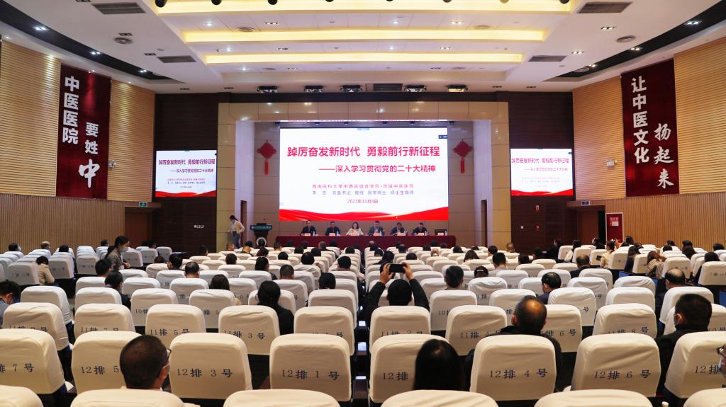 2022年11月4日,beat365官方网站附属中医医院召开了党的二十大精神传达学习大会。全体院领导、党委理论学习中心组成员,专职组织员、专职学生思政导师、科级干部、临床及辅检辅助科室主任、护士长、基础及临床教研室主任、党支部书记等参加会议。会议由党委书记李志主持。
