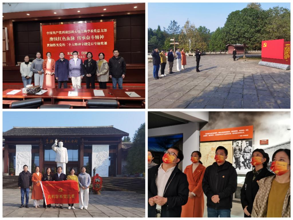 为深刻领会习近平新时代中国特色社会主义思想,深入学习贯彻党的二十大精神。11月27日,儿科学系党总支赴仪陇县朱德同志故居开展“赓续红色血脉•传承奋斗精神——贯彻落实党的二十大精神”专题党建活动。儿科学系党总支委员、支部书记、职工党员代表和学生辅导员参加活动。