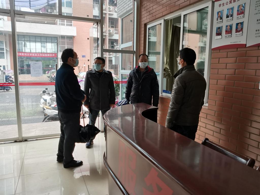 2月3日上午,学校副校长聂敏海带队检查两校区疫情防控工作,党委办公室、党委宣传部、武装保卫部、学生工作部及后勤管理处处级领导干部和相关科室负责人参加。聂敏海一行先后查看了忠山粒香苑食堂、学生公寓等重点防疫区域。