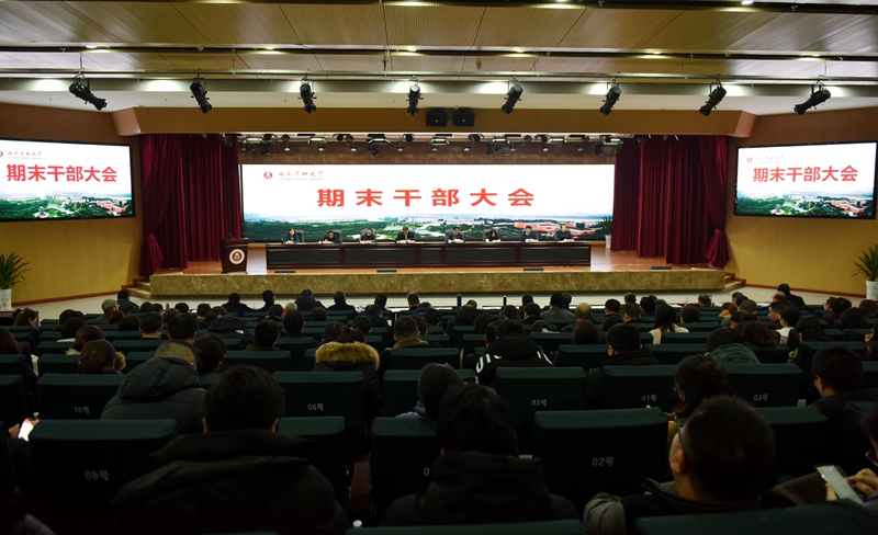 1月9日下午,学校期末干部大会在城北校区第一学术报告厅召开。党委书记廖斌同志主持会议。