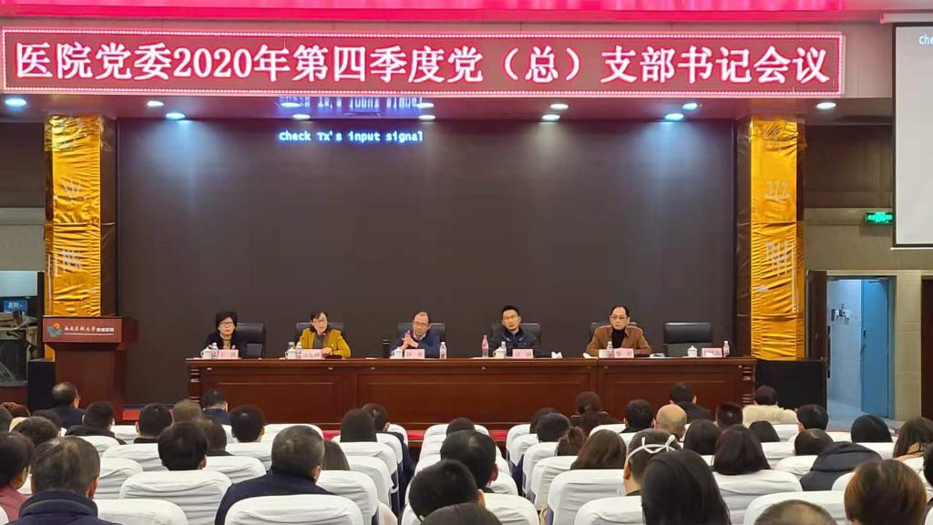 12月1日,附属医院在学术报告厅召开2020年第四季度党(总)支部书记会议。附属医院党委书记、党委副书记,全体党(总)支书记等100余人参加会议,会议由党委书记徐勇主持。