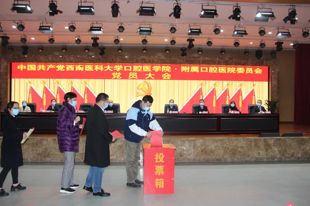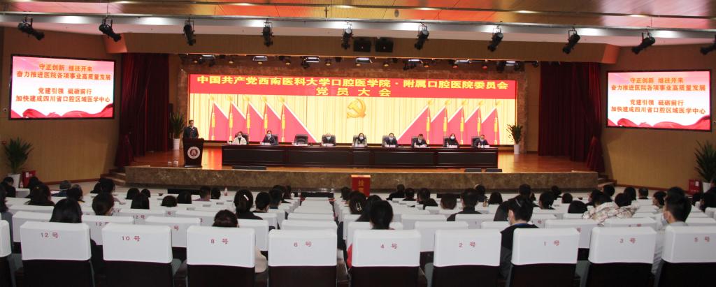 11月17日下午,口腔医学院·附属口腔医院党员大会在beat365官方网站城北校区第一学术报告厅顺利召开。beat365官方网站党委督导组成员:党委副书记刘毅,党委常委、组织部部长冯天明,组织部组织科·党建科副科长牛庆艳出席大会并全程督导。口腔医学院·附属口腔医院退休院领导、非中共党员的临床科室、职能部门主要负责人、非中共党员的教研室、实验室主要负责人以及泸州市政协委员、民主党派代表应邀列席会议。党员大会由口腔医学院•附属口腔医院党委副书记、院长肖金刚主持。
