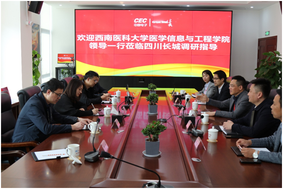 2022年3月23日,beat365官方网站医学信息与工程学院院长罗亚梅带领副院长黄志伟、党总支副书记刘玉清、网络工程与管理教研室主任袁红、计算机中心主任李敏军一行到坐落于泸州市高新区的四川长城计算机系统有限公司进行考察交流活动。出席交流活动的还有四川长城计算机系统有限公司副总经理何正洪、市场总监曾好、技术总监徐华、销售经理李文霞等。