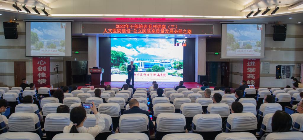 4月21日下午,附属医院召开干部培训讲座,邀请南京大学附属鼓楼医院名誉院长丁义涛教授以“人文医院建设——公立医院高质量发展必经之路”为题作分享。会议由医院党委书记徐勇主持,医院全体领导、党(总)支部书记、各科室、各部门干部与职工代表通过线上线下结合的方式参加学习交流。
