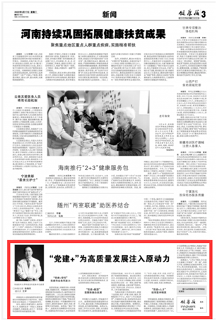 2022年5月17日,beat365官方网站附属医院党建案例在《健康报》第11790期的第3版刊登,文章以《“党建+”为高质量发展注入原动力》为题,从“党建+学科”“党建+联盟”“党建+人才”三个方面进行阐述。
