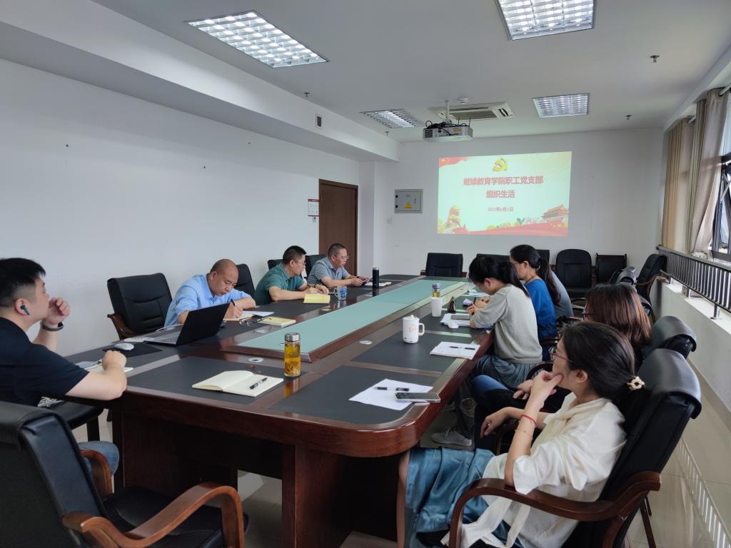 6月1日,继续教育学院职工党支部在德诚楼1012会议室举行组织生活会,开展学习贯彻习近平新时代中国特色社会主义思想主题教育,支部全体党员参加学习。会议由党支部书记杜杰主持。