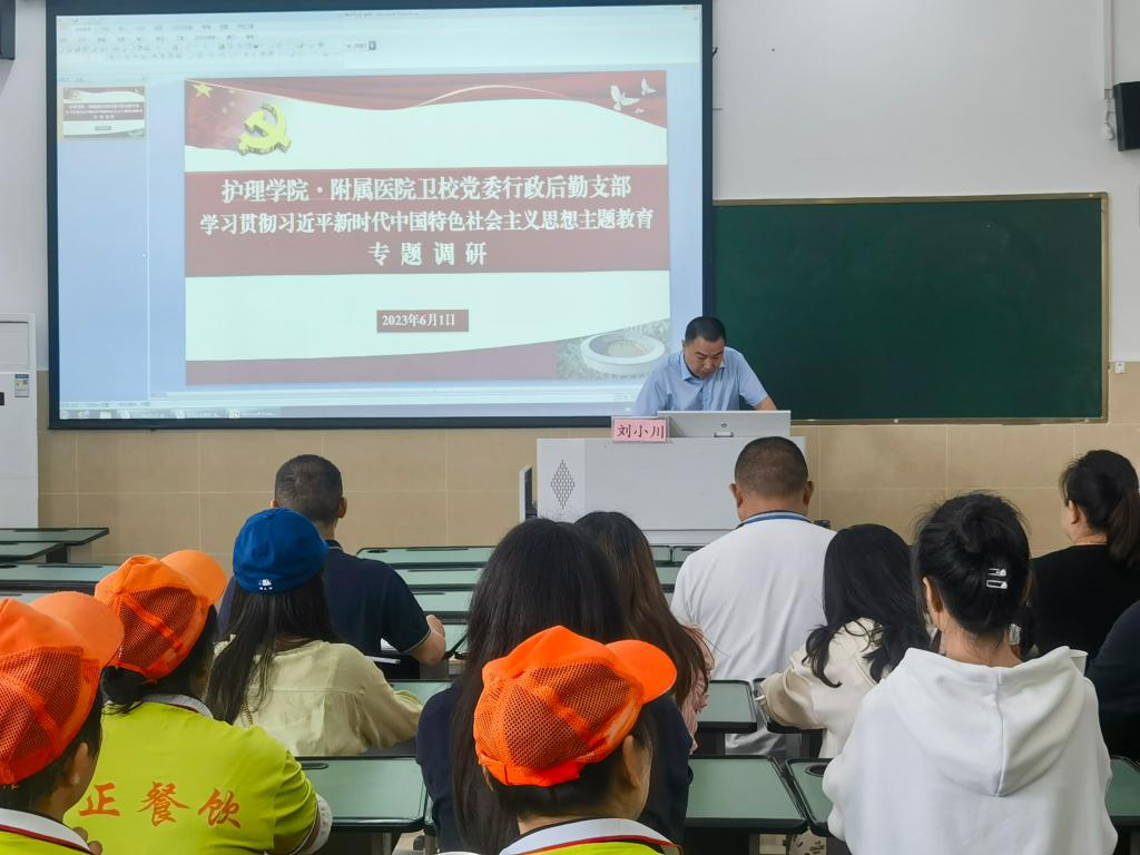 为持续深化学习贯彻习近平新时代中国特色社会主义思想主题教育走深走实,6月1日,护理学院·附属医院卫校党委委员、副院长谢长友带领行政后勤党支部全体党员、方源企业管理有限公司副总经理赵小兰、食堂工作人员、部分学生代表,在附属医院卫校纳溪校区围绕“加强卫校后勤创新管理,提升后勤服务质量和水平”开展专题调研。
