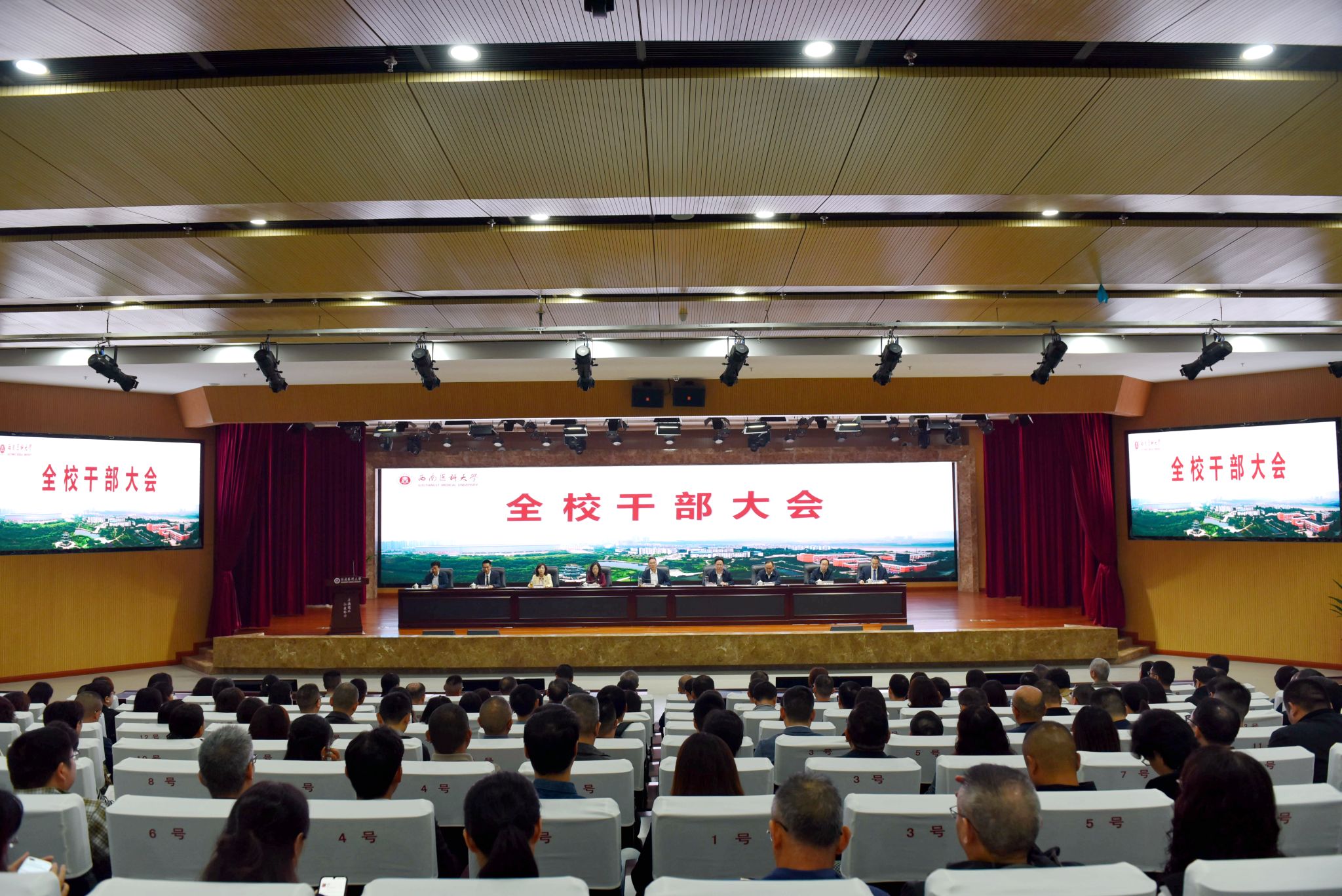10月16日上午,学校在城北校区德诚楼学术报告厅召开干部大会,宣布江涌、赵领同志任职。全校在校校领导、处级领导干部,全国、省、市党代表、人大代表、政协委员和民主党派主要负责人,教编正高二、三级专业技术人员参加会议。党委副书记、校长张春祥主持会议。