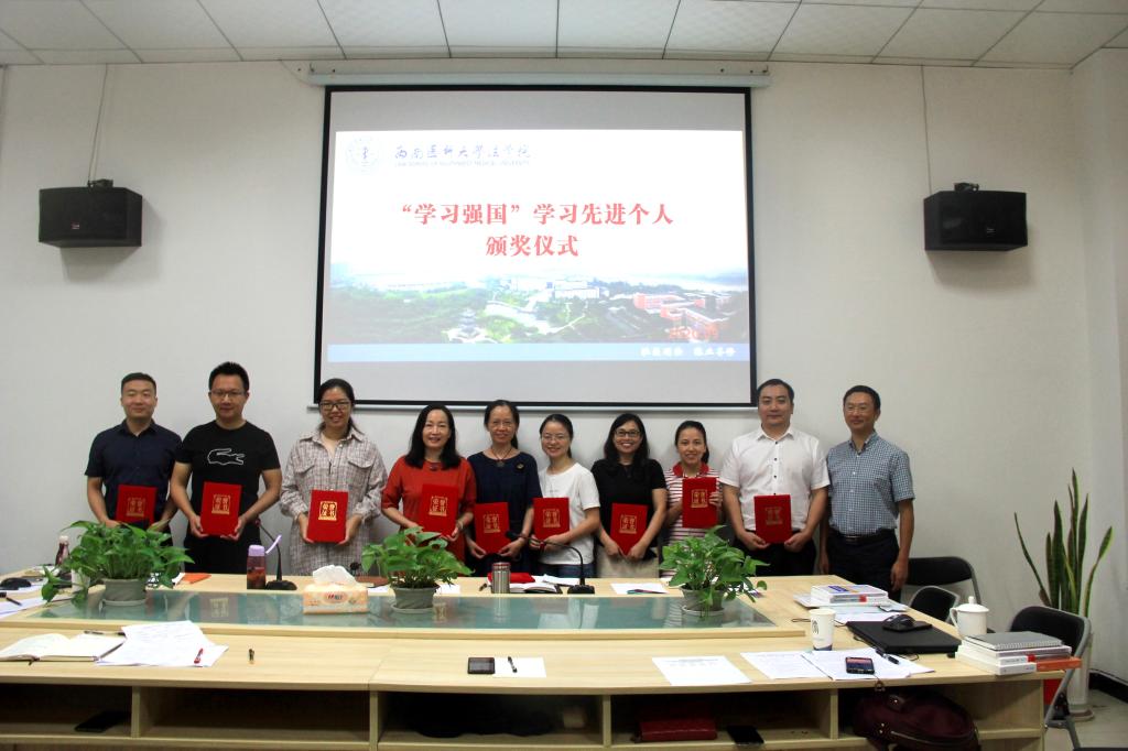 法学院党总支表彰了“学习强国”学习先进个人,对近期工会组织的“勤学习、创文明”知识竞赛活动优胜者也进行了表彰,同时对全体职工参与的为期一个月的暑期“万步有约”活动进行了颁奖。