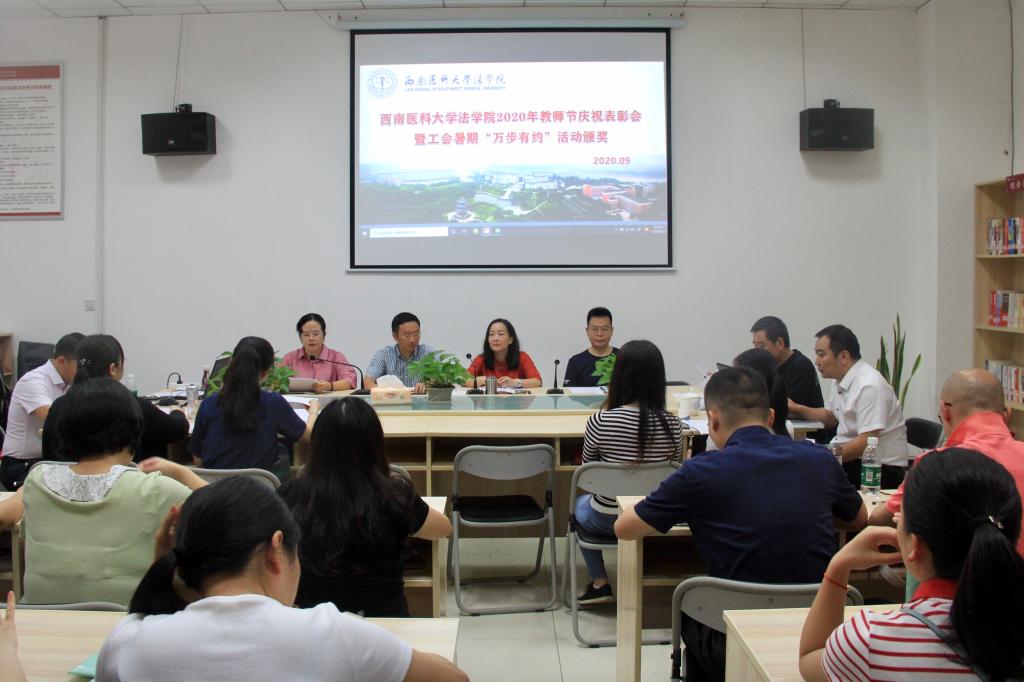 9月10日上午,在全国第36个教师节来临之际,法学院举行教师节庆祝表彰暨“学习强国”“万步有约”活动颁奖会,会议由法学院党总支副书记黄莉主持。