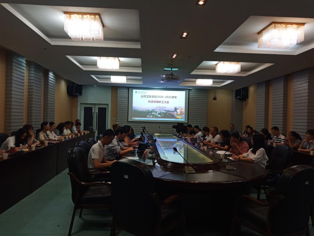 为统一思想,明确方向,全面落实新学期各项工作,9月10日,公共卫生学院在图书馆第三会议室召开了新学期职工大会。全体教职工参加了会议,会议由公共卫生学院党总支书记张依国主持。