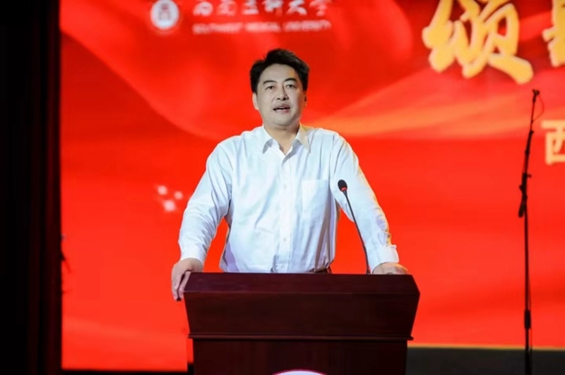 廖斌致辞。他指出,站在新时代,全校上下要坚持以习近平新时代中国特色社会主义思想为指导,坚持立德树人根本任务,聚焦“博士点零的突破”“总规建设”“治理能力现代化”三大战略任务,不忘初心、牢记使命,立足本职、砥砺前行,为学校建设成为特色鲜明的西部高水平医科大学,为祖国实现中华民族伟大复兴的中国梦,作出新的更大贡献。